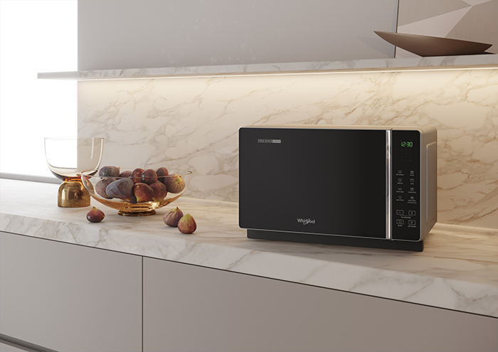 El nuevo microondas Free Space de libre instalación de Whirlpool, el modelo MWF 206 SB, carece de plato giratorio, lo que permite aprovechar toda la anchura y profundidad del aparato, incrementando su capacidad interior un 25%. ¿Qué te parece?