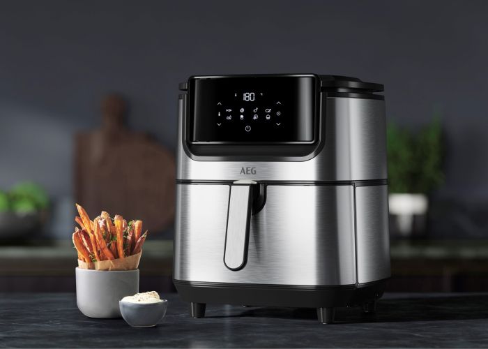 AEG acaba de sacar al mercado su primera freidora que no utiliza aceite. Air Fryer permite al usuario freír, asar y hornear utilizando una pequeña cantidad de aceite. Incluso en determinados alimentos podrás prescindir totalmente del aceite. . De esta manera, AEG te ayuda a tener una dieta más sana sin renunciar a la textura de los alimentos.